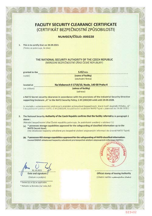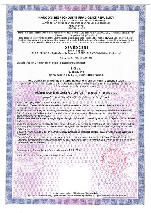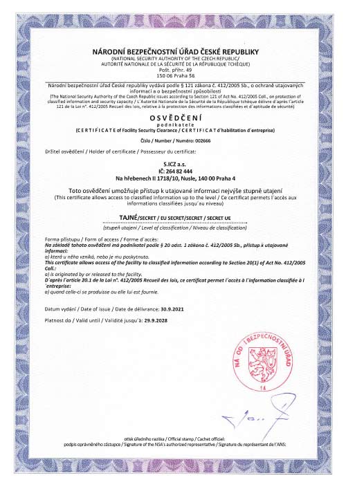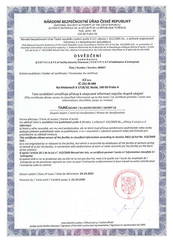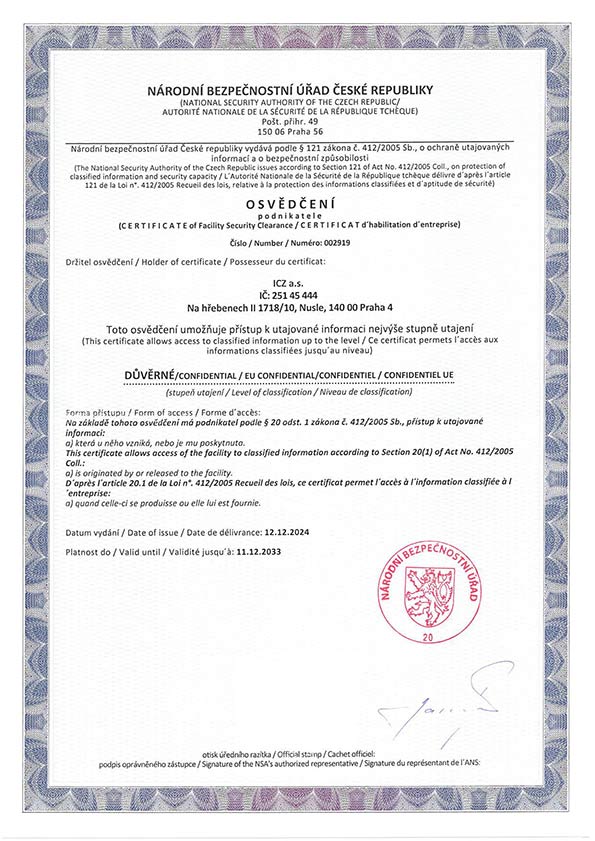 Skupina ICZ je držitelem těchto certifikátů a osvědčení: